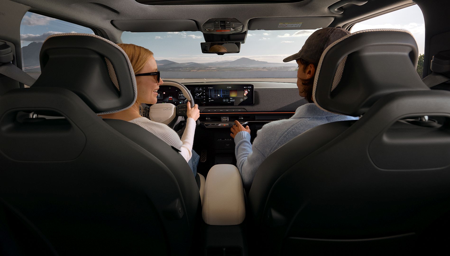 Vertikalus kėbulo dizainas užtikrina pakankamai vietos galvoms, o pailginta erdvė kojoms gale leidžia patogiai jaustis net ir ilgesnėse kelionėse. Toks universalumas leidžia EV2 sėkmingai atlikti pagrindinio šeimos automobilio funkciją – čia nesunkiai telpa pirkiniai, vaikiškas vežimėlis ar savaitgalio išvykos reikmenys.